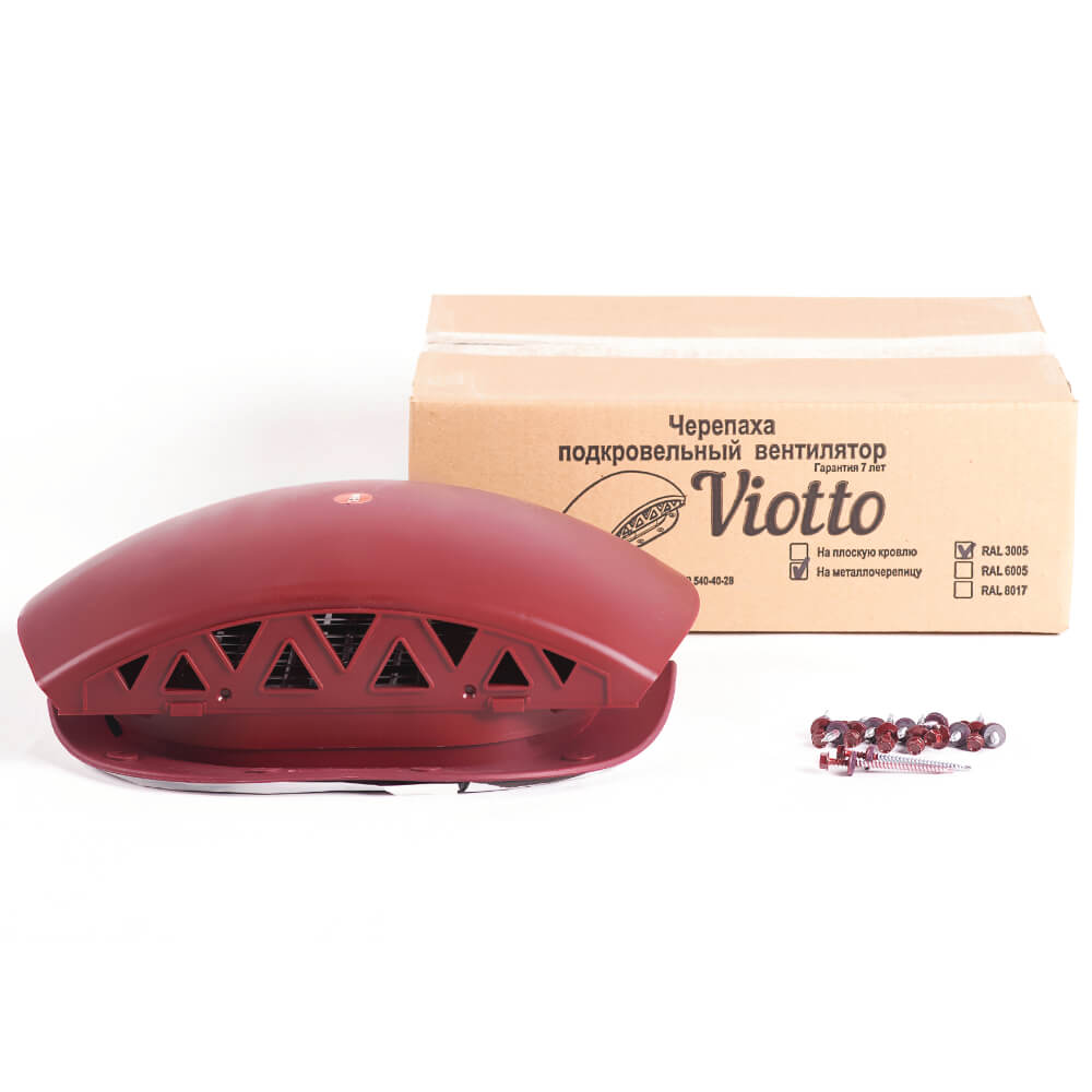 Подкровельный вентилятор "Черепаха" Viotto RAL 3005 Красное Вино для кровли из металлочерепицы в Кургане
