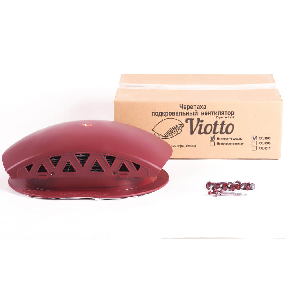 Подкровельный вентилятор "Черепаха" Viotto RAL 3005 Красное Вино для готовой мягкой и фальцевой кровли в Кургане