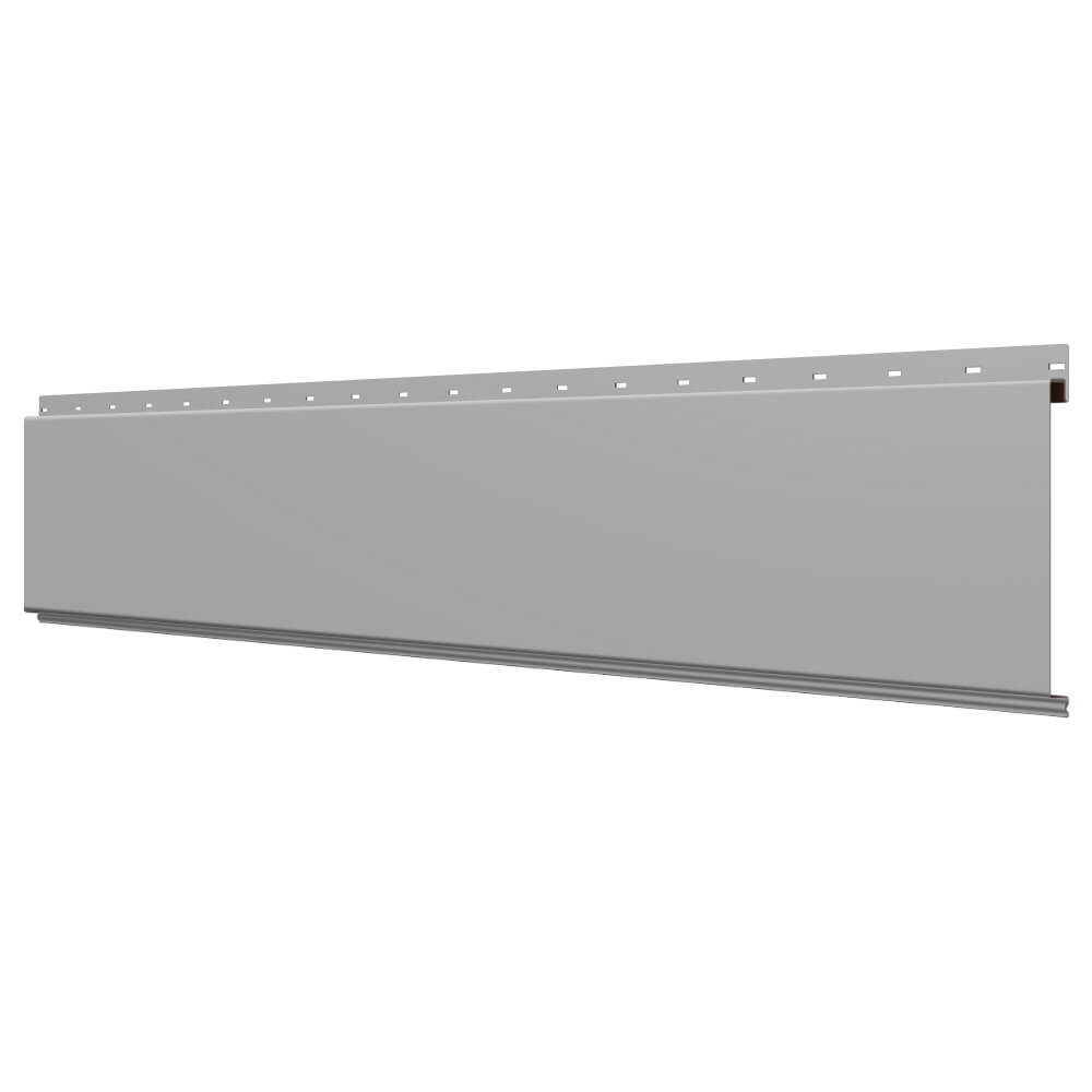 Линеарная потолочно-стеновая панель ГЛАДКАЯ цвет RAL7004 Серый применяется в качестве софитов для подшивы крыши, наружной и внутренней отделки потолков, стен, фронтонов фасада дома в Кургане.