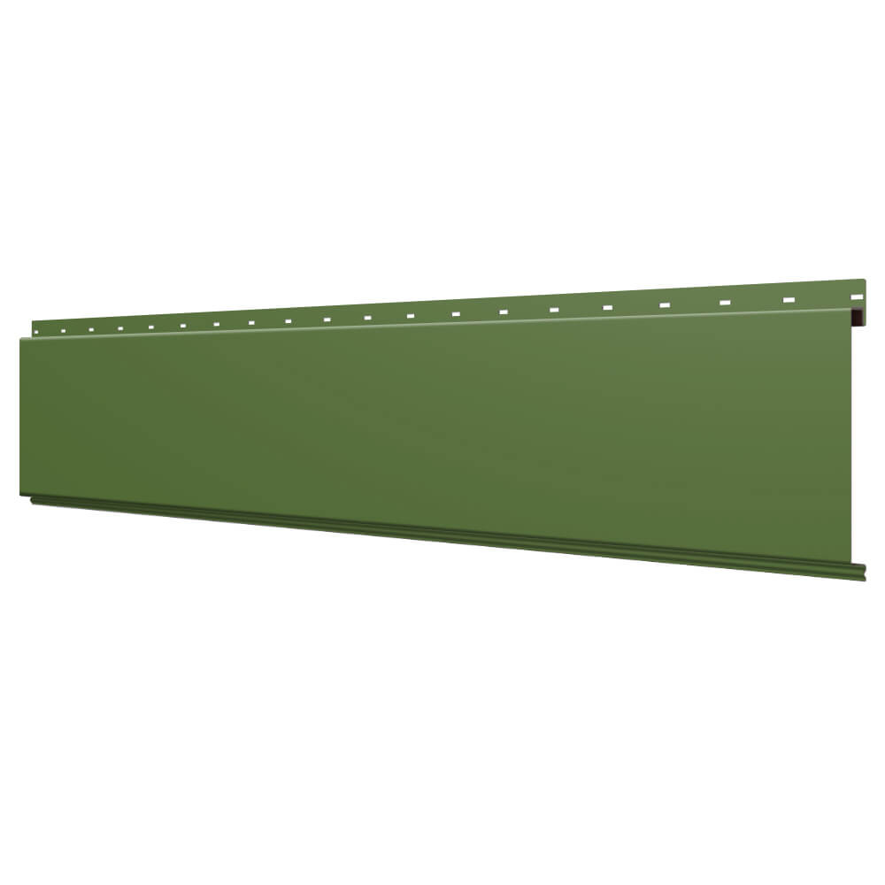 Линеарная потолочно-стеновая панель ГЛАДКАЯ цвет RAL6002 Зеленый Лист применяется в качестве софитов для подшивы крыши, наружной и внутренней отделки потолков, стен, фронтонов фасада дома в Кургане.