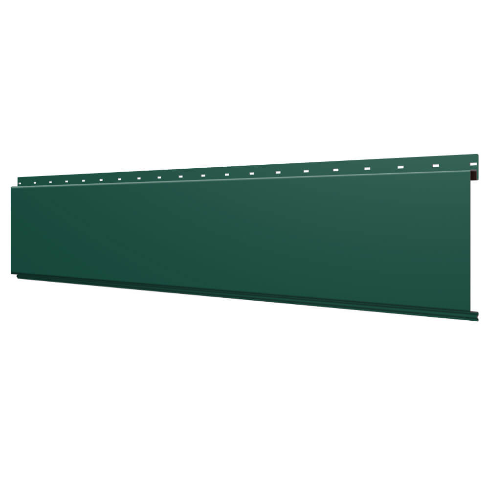 Линеарная потолочно-стеновая панель ГЛАДКАЯ цвет RAL6005 Зеленый Мох применяется в качестве софитов для подшивы крыши, наружной и внутренней отделки потолков, стен, фронтонов фасада дома в Кургане.