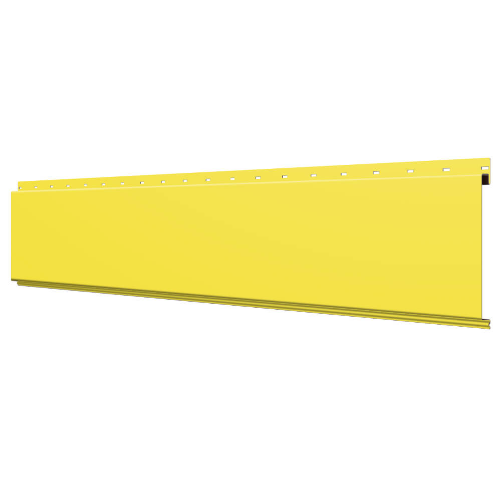 Линеарная потолочно-стеновая панель ГЛАДКАЯ цвет RAL1018 Желтый применяется в качестве софитов для подшивы крыши, наружной и внутренней отделки потолков, стен, фронтонов фасада дома в Кургане.
