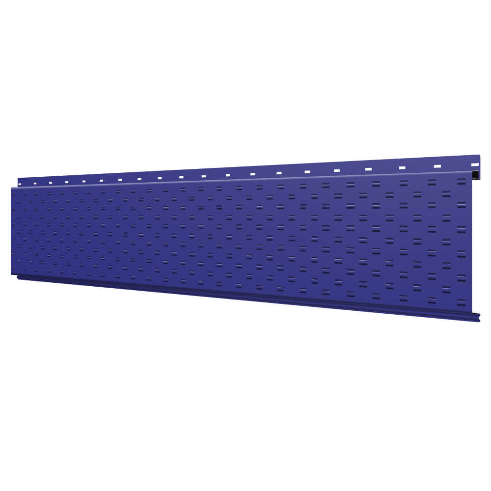 Линеарная потолочно-стеновая панель с ПЕРФОРАЦИЕЙ для вентиляции цвет RAL5002 Синий Ультрамарин применяется в качестве софитов для подшивы крыши, наружной и внутренней отделки потолков, стен, фронтонов фасада дома в Кургане.