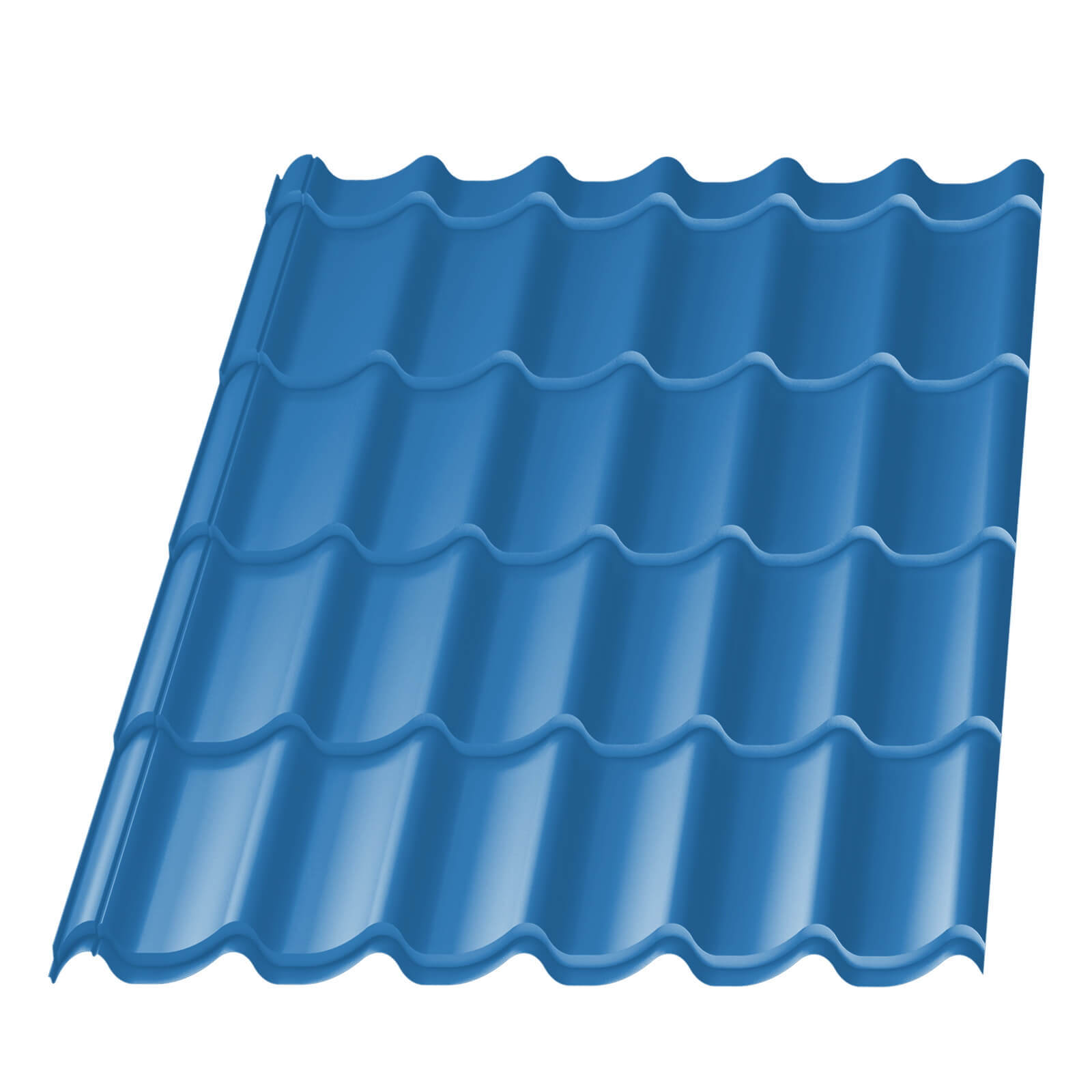 Металлическая черепица Меркурий цвет RAL 5015 Небесно-Голубой имеет профиль внешне на кровле напоминающий классическую керамическую черепицу. Меркурий — это обновленный аналог профиля металлической черепицы для кровли крыши. Форма профиля имеет богатый внешний вид напоминающий небольшие набегающие волны. Лучшие показатели герметизации сделали профиль Меркурий гарантом стабильной и долговременной службы на крышах в Кургане. Данный профиль отличается не только своим качеством и практичностью, но и благородным внешним видом.