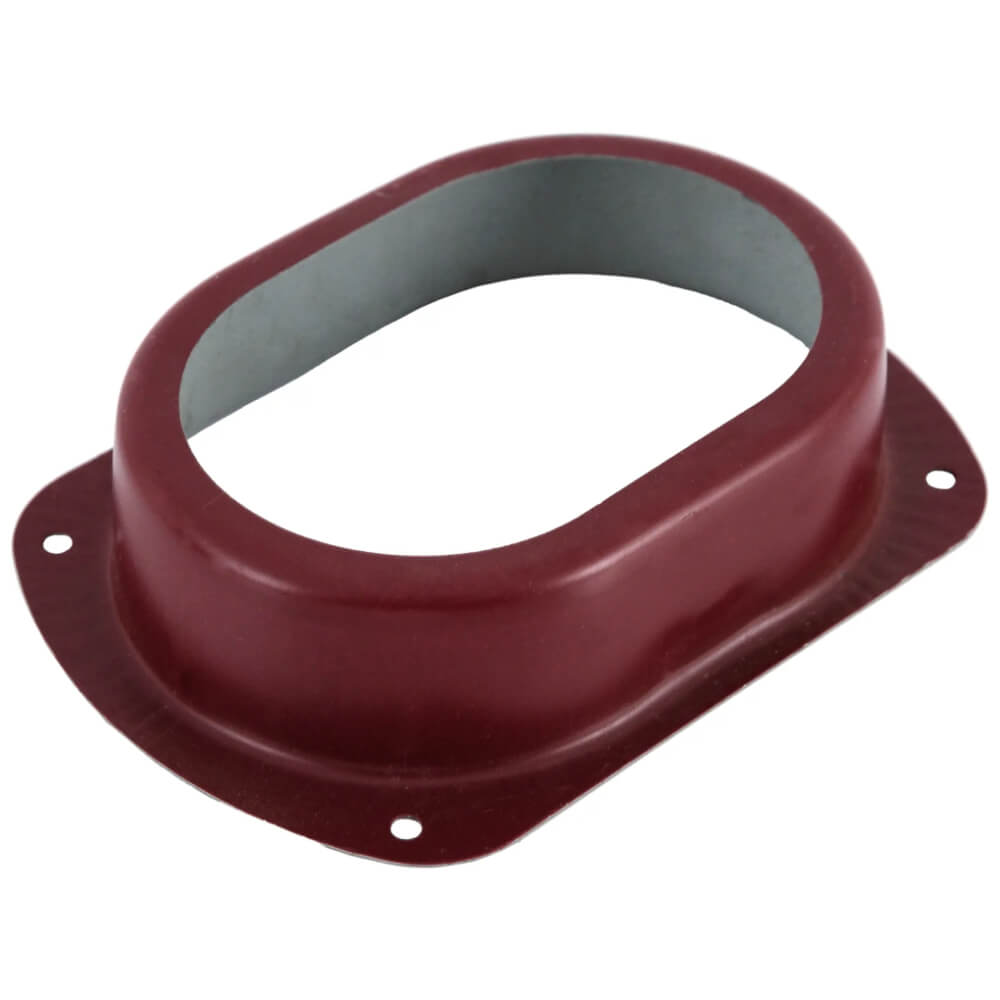 Воронка выпускная врезная 76*102 RAL P363 Вишня организует точку слива воды из желоба в трубу в установленном месте. Является универсальной: она служит для присоединения к прямоугольному желобу, как прямоугольной трубы, так и круглой.