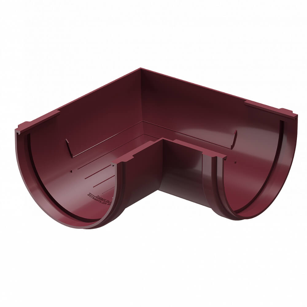 Угловой элемент желоба универсальный ДЕКЕ STANDARD d120мм 90 градусов цвет RAL 3005 Красный в Кургане. Угловые элементы устанавливаются как на внешних, так и на внутренних углах кровли и предназначены для соединения желобов.