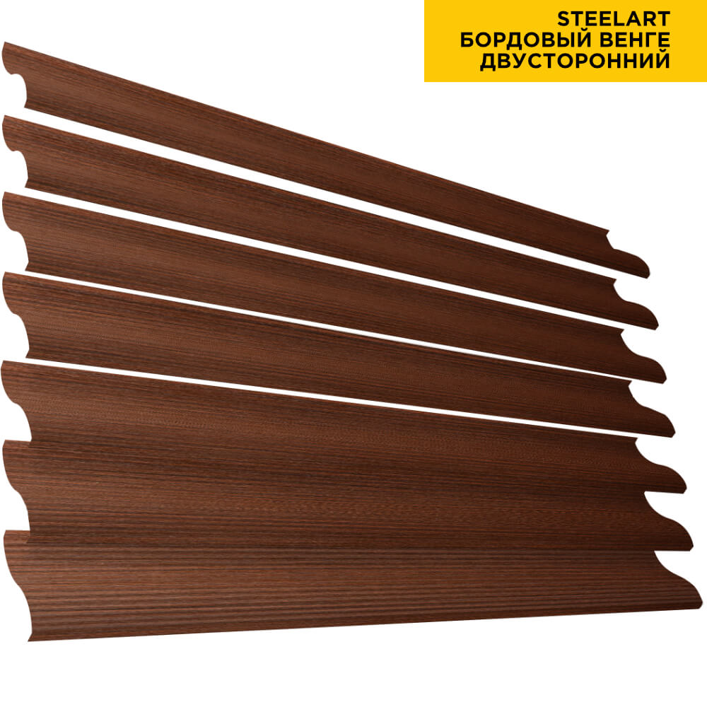 Ламель Еврожалюзи металлическая S-образная, цвет под дерево Бордовый Венге SteelArt Россия двухстороннее покрытие, длина любая кратно 1см под заказ - для забора-жалюзи, беседки, перголы в Кургане.
