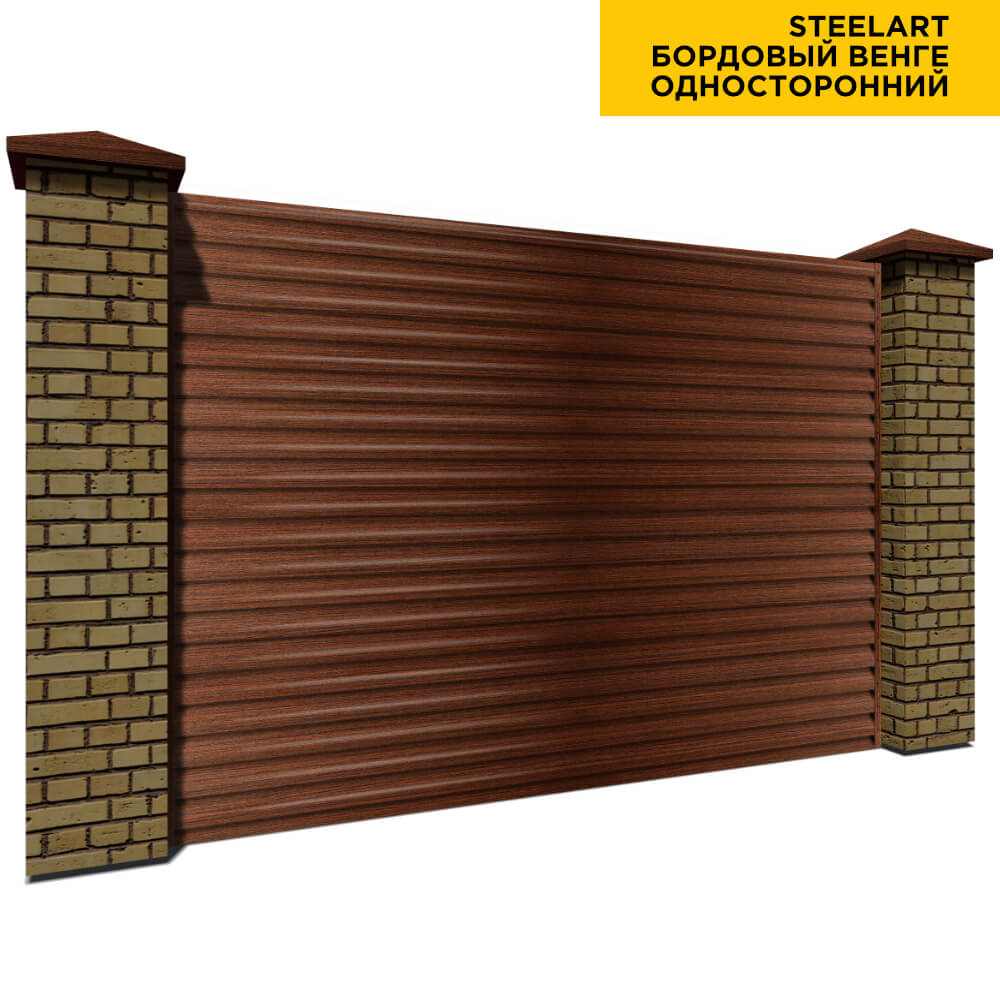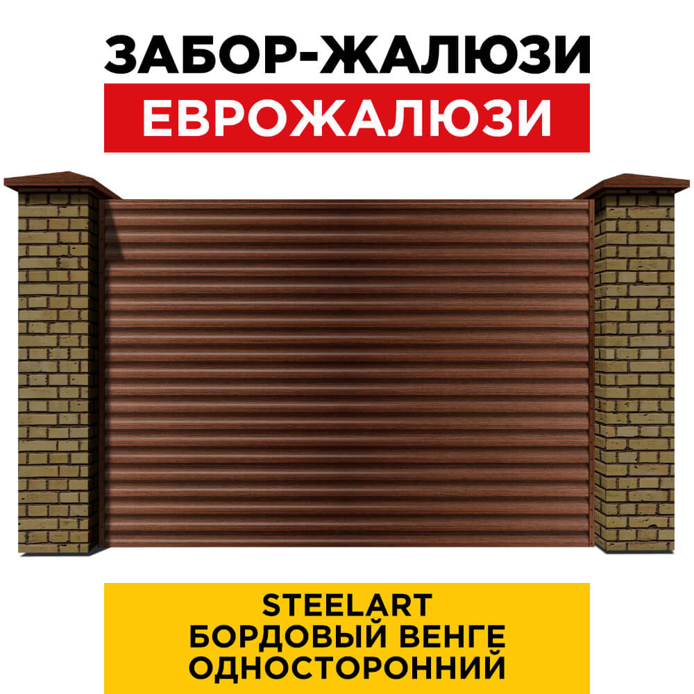 Ламель Еврожалюзи металлическая S-образная, цвет под дерево Бордовый Венге SteelArt Россия одностороннее покрытие, длина любая кратно 1см под заказ - для забора-жалюзи, беседки, перголы в Кургане