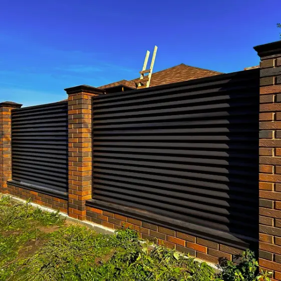 Представьте себе строгую элегантность и надежную защиту вашего дома — именно это дарит шикарный забор-жалюзи с ламелями Еврожалюзи в насыщенном оттенке RAL 8019 Тёмный Шоколад. Двустороннее покрытие полиэстер подчеркивает премиальный внешний вид и долговечность конструкции, а стильные горизонтальные линии добавляют участку современный, респектабельный облик. Такой забор не просто ограждает — он подчеркивает вкус, статус и заботу о комфорте вашего пространства.